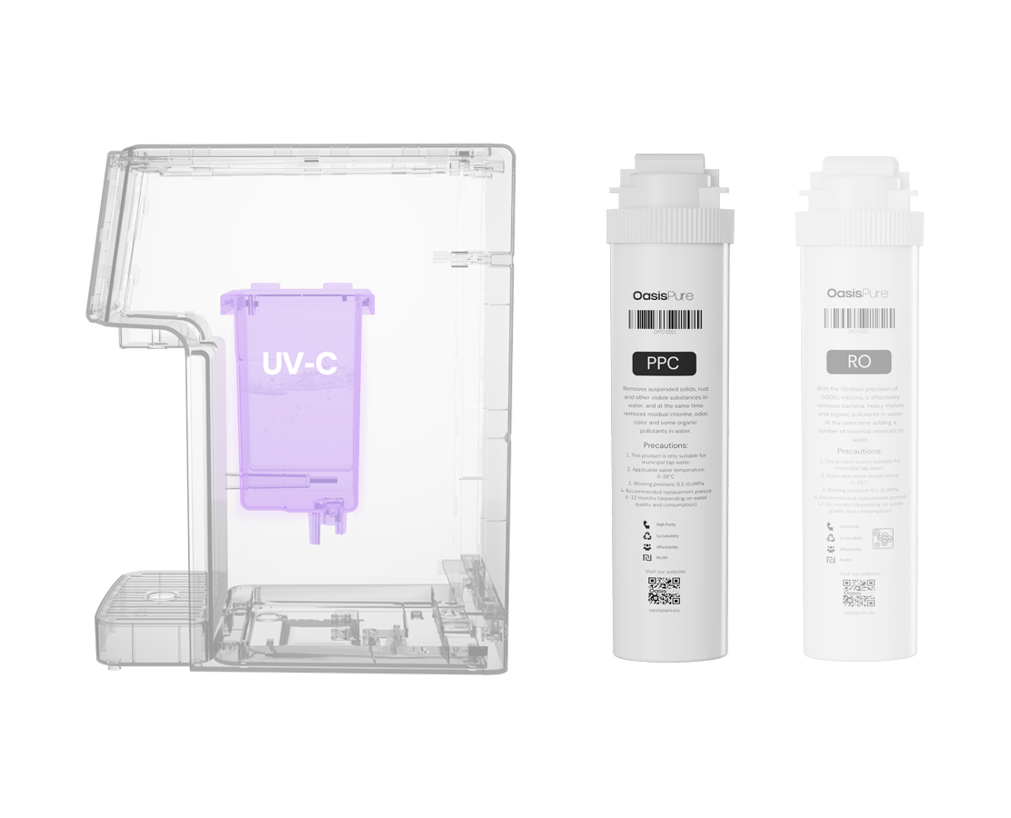 OasisPure's advanced filtration system delivers pure and safe water through a 6-step process. With dual cartridges and UV sterilization, it effectively removes impurities and ensures every sip meets the highest standards of quality.