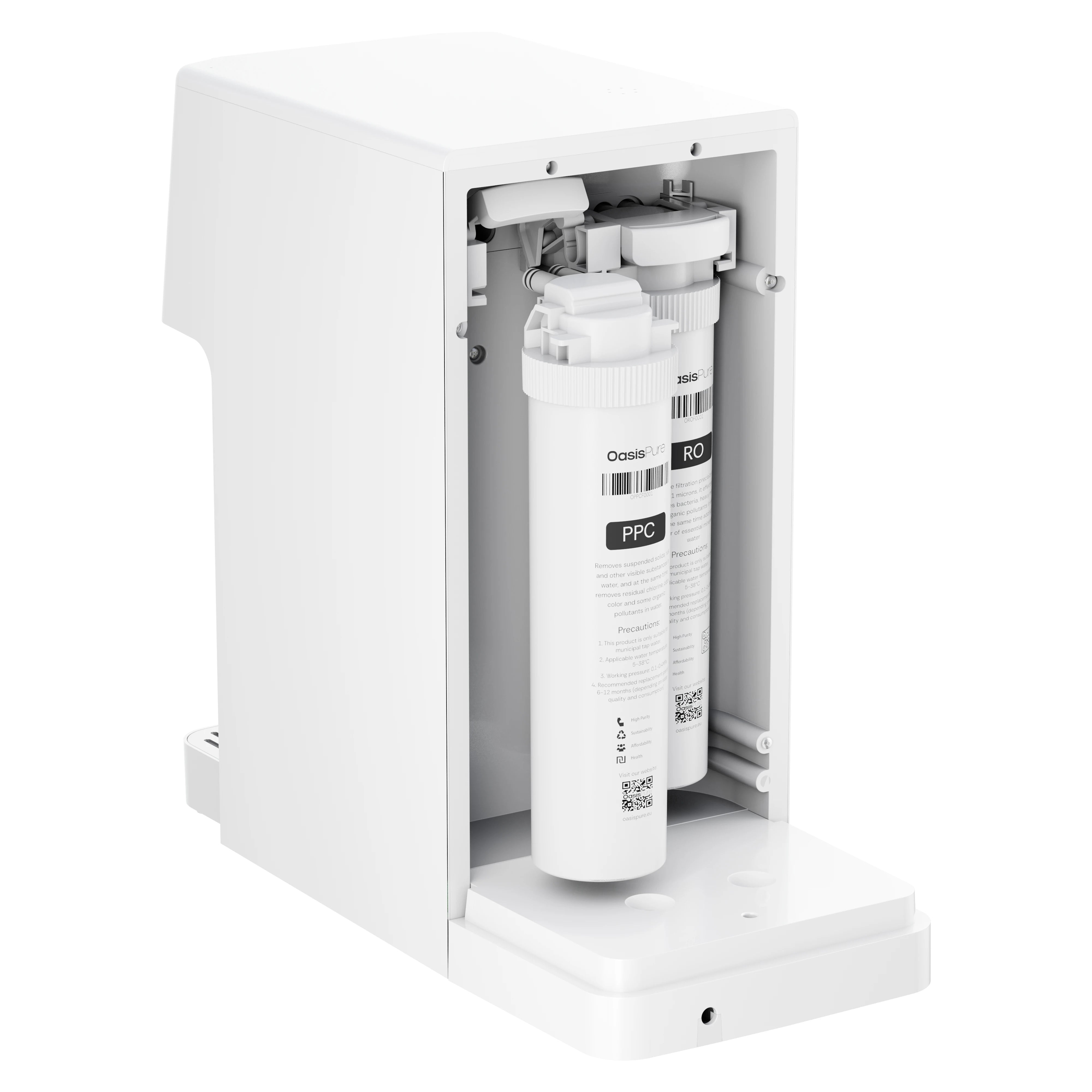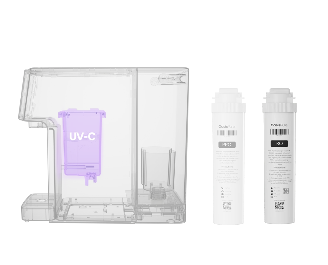 OasisPure's advanced filtration system delivers pure and safe water through a 6-step process. With dual cartridges and UV sterilization, it effectively removes impurities and ensures every sip meets the highest standards of quality.